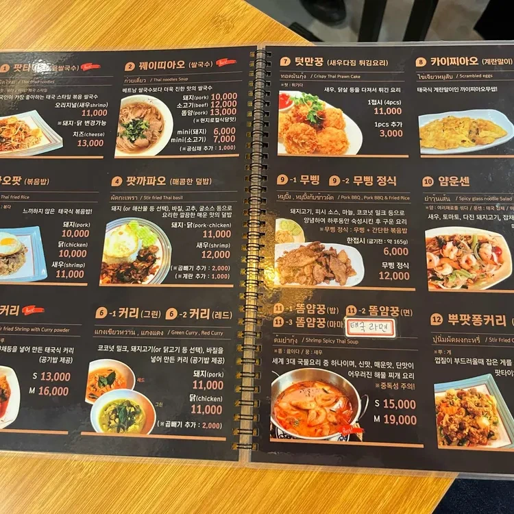 이곳의 추천 메뉴는 다양하지만, 특히 팟타이와 그린 커리가 인기랍니다. 팟타이는 새우와 땅콩, 그리고 신선한 채소가 어우러져 정말 맛있어요. 가격은 약 12,000원 정도로, 양도 푸짐해요. 그린 커리는 부드러운 닭고기와 신선한 채소가 들어가고, 크리미한 소스가 일품이에요. 가격은 13,000원 정도로, 정말 가성비가 뛰어나죠.