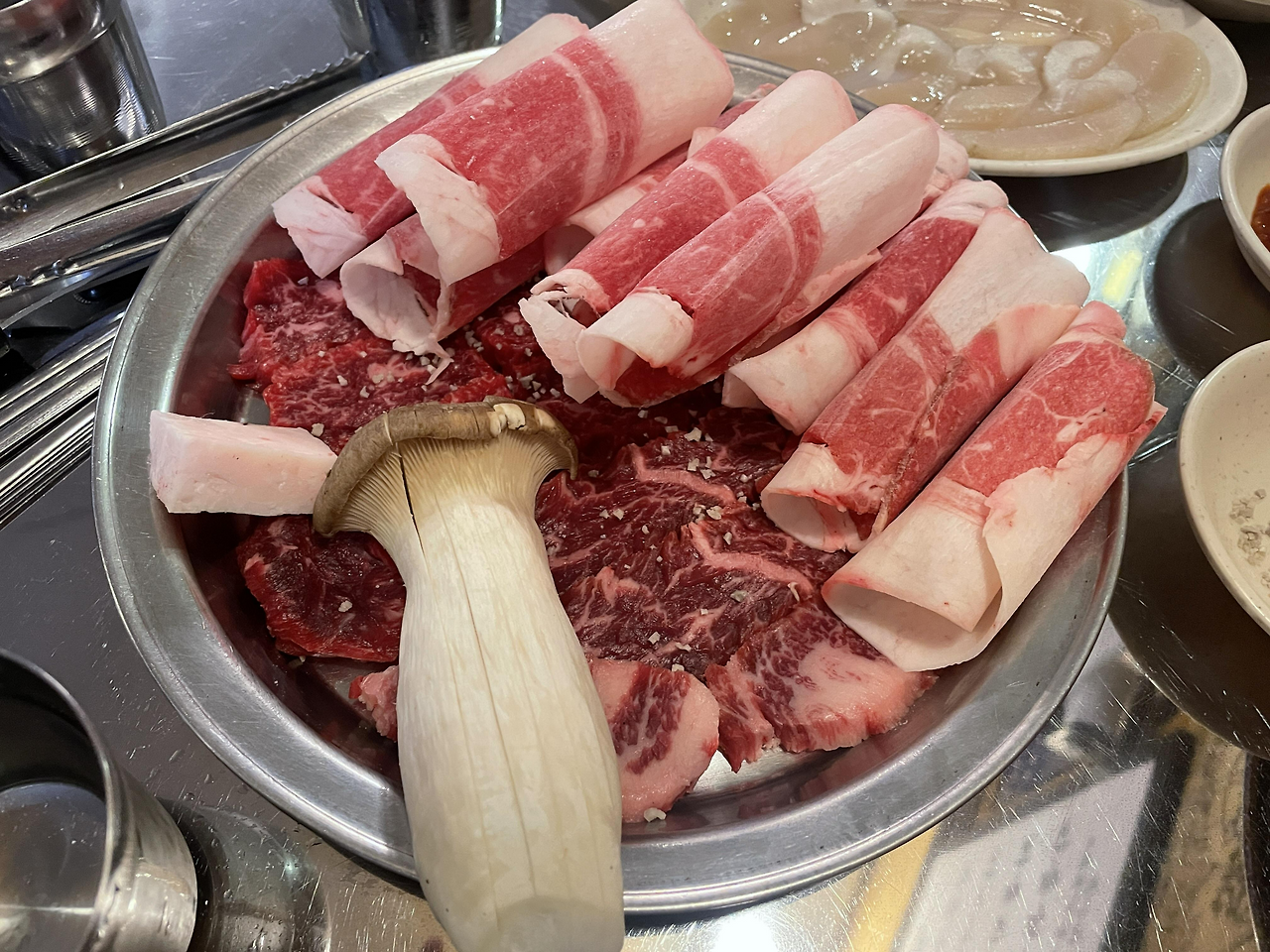 식당 내부는 아늑하고 편안한 분위기로, 친구들과 함께 오기 좋은 곳이에요. 테이블 간격이 적당해서 대화하기에도 좋고, 소음이 심하지 않아서 편안하게 식사할 수 있었어요. 특히, 고기를 구울 때 나는 향이 식욕을 더욱 자극하더라고요.