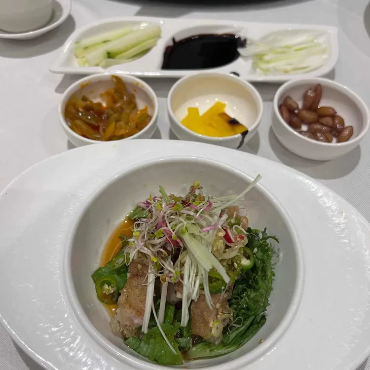 이곳의 대표 메뉴는 단연 베이징덕이에요. 바삭한 껍질과 부드러운 속살이 일품인 이 요리는 정말 맛있어요. 베이징덕 외에도 다양한 사이드 메뉴가 준비되어 있는데, 특히 볶음밥과 각종 소스가 잘 어울려요.