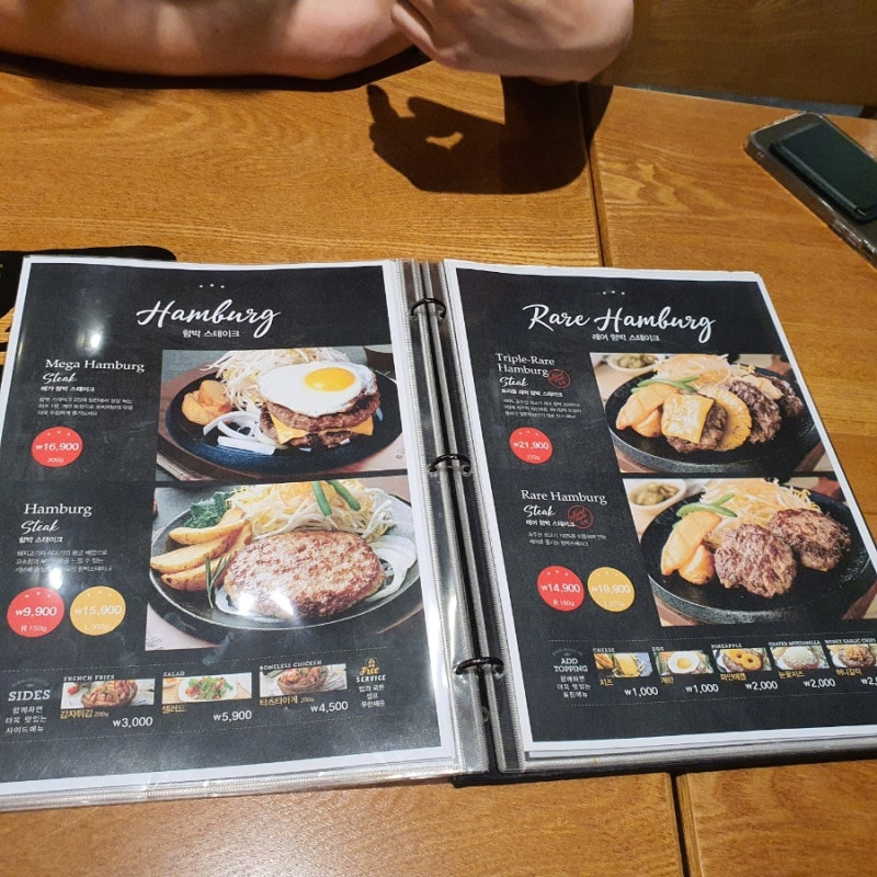 이곳의 추천 메뉴는 바로 '함박스테이크'와 '햄버거 스테이크'예요. 함박스테이크는 부드러운 고기와 함께 다양한 채소가 곁들여져 나와요. 특히, 고기의 육즙이 살아있어 정말 맛있답니다. 햄버거 스테이크는 두툼한 패티와 함께 나와서 한 끼 식사로 충분해요.