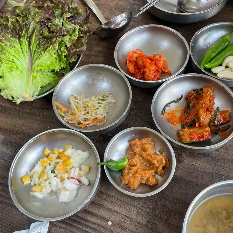 처럼 여러 가지 반찬이 나와서 식사를 더욱 풍성하게 만들어줘요. 반찬으로는 김치, 콩나물, 그리고 매콤한 야채 무침 등이 있어요.