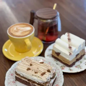 가격은 8,000원으로, 달콤한 맛을 선호하신다면 꼭 드셔보세요. 음료는 라떼 아트가 예쁜 노란 컵의 라떼가 인기인데, 가격은 5,000원으로 아침에 기분 좋게 시작할 수 있을 거예요.