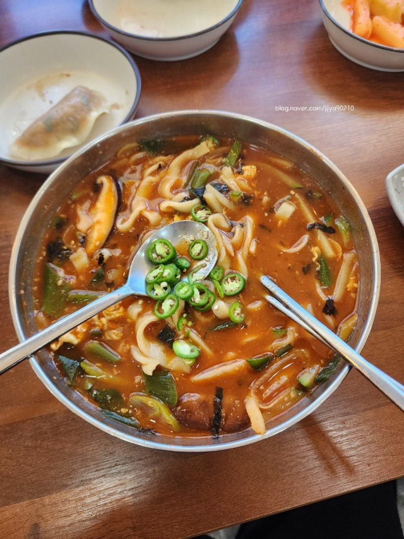 칼국수는 두툼한 수제 면발이 특징인데, 국물은 시원하고 깊은 맛을 자랑해요. 특히, 매운 맛을 좋아하시는 분들은 매운 장칼국수를 꼭 드셔보세요.