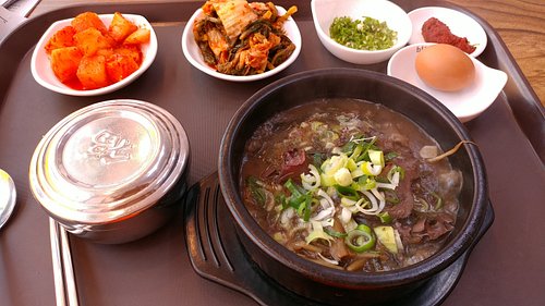 해장국은 국물이 진하고 깊은 맛이 나서, 술 마신 다음 날에 딱이야. 그리고 사이드로 나오는 깍두기와 김치도 정말 맛있어. 특히 깍두기는 아삭아삭한 식감이 일품이야.