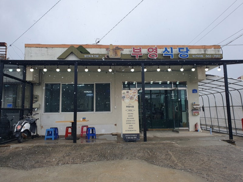 부영식당은 강릉 연곡면에 위치해 있어요. 이곳은 간판이 눈에 띄게 잘 보이고, 외관도 아늑한 느낌을 주는 곳이에요.