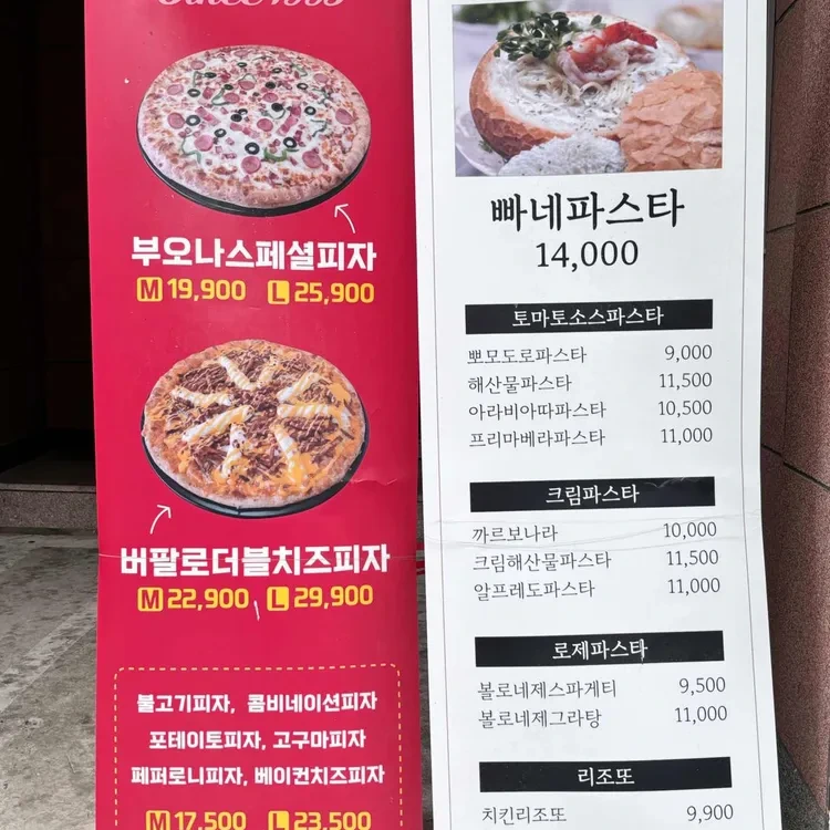 부오나피자의 가격대는 합리적이에요. 피자 외에도 다양한 파스타 메뉴가 있으며, 파스타는 14,000원부터 시작해요. 가격 대비 퀄리티가 뛰어나서 만족스러웠답니다.