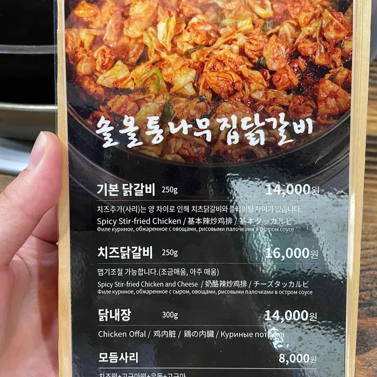 메뉴판을 보면 각 메뉴에 대한 설명이 잘 되어 있어서 선택하는 데 도움이 돼요. 개인적으로는 치즈닭갈비를 추천해요. 치즈가 듬뿍 올라가서 더욱 고소하고 맛있답니다.