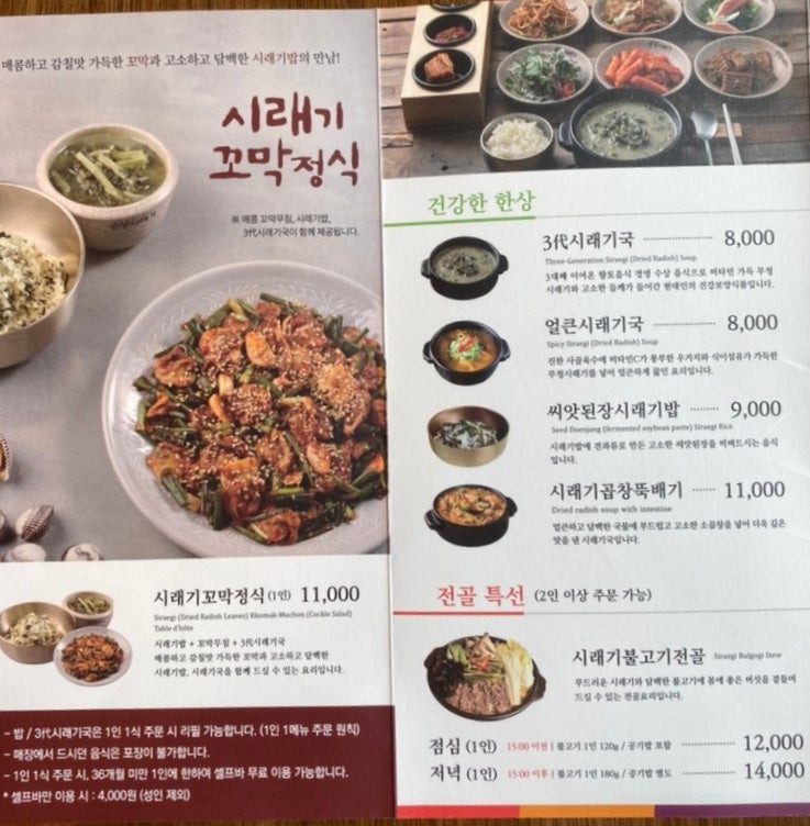 - 3대시래기국 : 8,000원