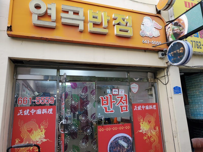 연곡반점은 강릉 연곡면에 위치해 있어요. 주변에는 연곡면사무소와 하나로마트가 있어 찾기 쉽답니다. 외관은 아담하면서도 화려한 간판이 눈에 띄어요.