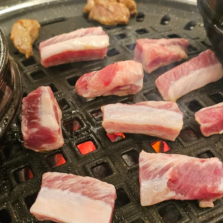 식당 내부는 아늑하고 편안한 분위기로, 친구나 가족과 함께 오기 좋은 곳이에요. 테이블 간격도 넉넉해 프라이빗한 식사가 가능하고, 조명이 따뜻해 편안한 느낌을 줘요. 고기 굽는 소리와 함께 나오는 고소한 냄새는 식욕을 자극해요.