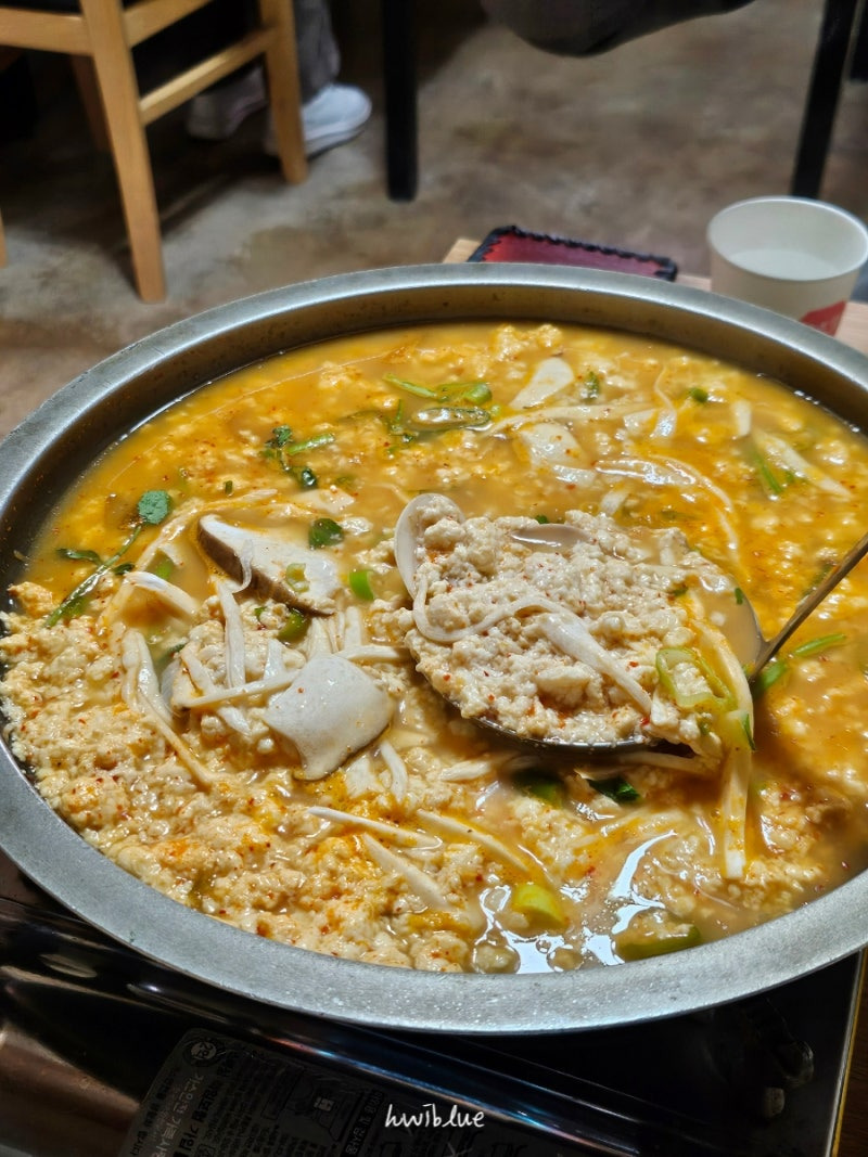 이곳의 대표 메뉴는 순두부찌개에요. 가격은 8,000원부터 시작하며, 다양한 재료가 들어가 있어요. 특히, 버섯과 신선한 채소가 듬뿍 들어가 있어 건강에도 좋답니다. 또한, 순두부찌개 외에도 전골과 같은 다양한 메뉴가 있어 선택의 폭이 넓어요.