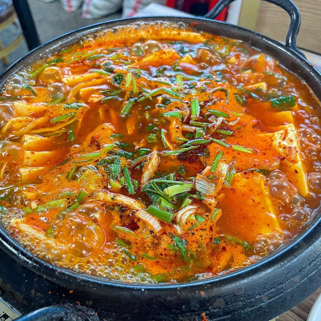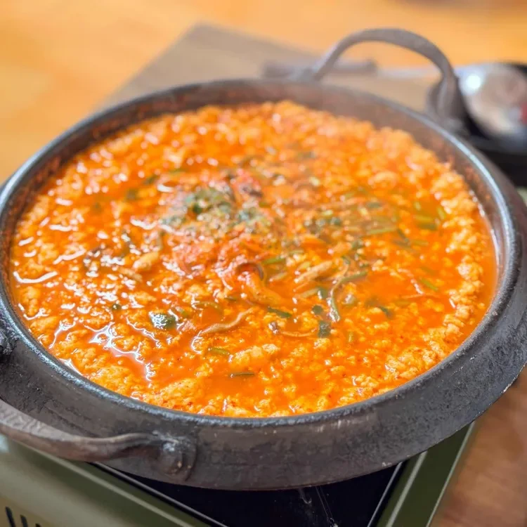전골 메뉴도 있는데, 2인 이상 주문 가능해. 가격은 10,000원부터 시작해. 해물이나 고기를 추가할 수 있어서 더욱 풍성한 맛을 즐길 수 있어. 특히, 해물 순두부찌개는 국물에서 해물향이 나면서 담백한 맛이 일품이야.