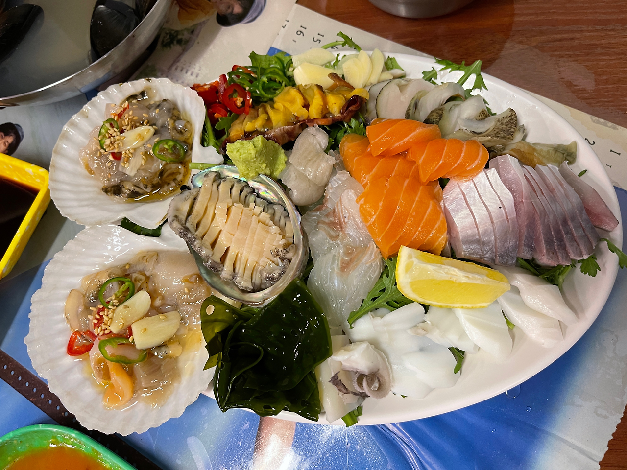 서로해물의 추천 메뉴는 무엇보다도 모둠해물이에요. 다양한 해산물이 한 접시에 담겨 나와서 시각적으로도 즐거움을 줘요. 신선한 조개, 전복, 그리고 회가 함께 나와서 해산물 애호가들에게는 천국 같은 메뉴죠. 또한, 회는 연어, 고등어, 그리고 다양한 흰살생선이 포함되어 있어요.