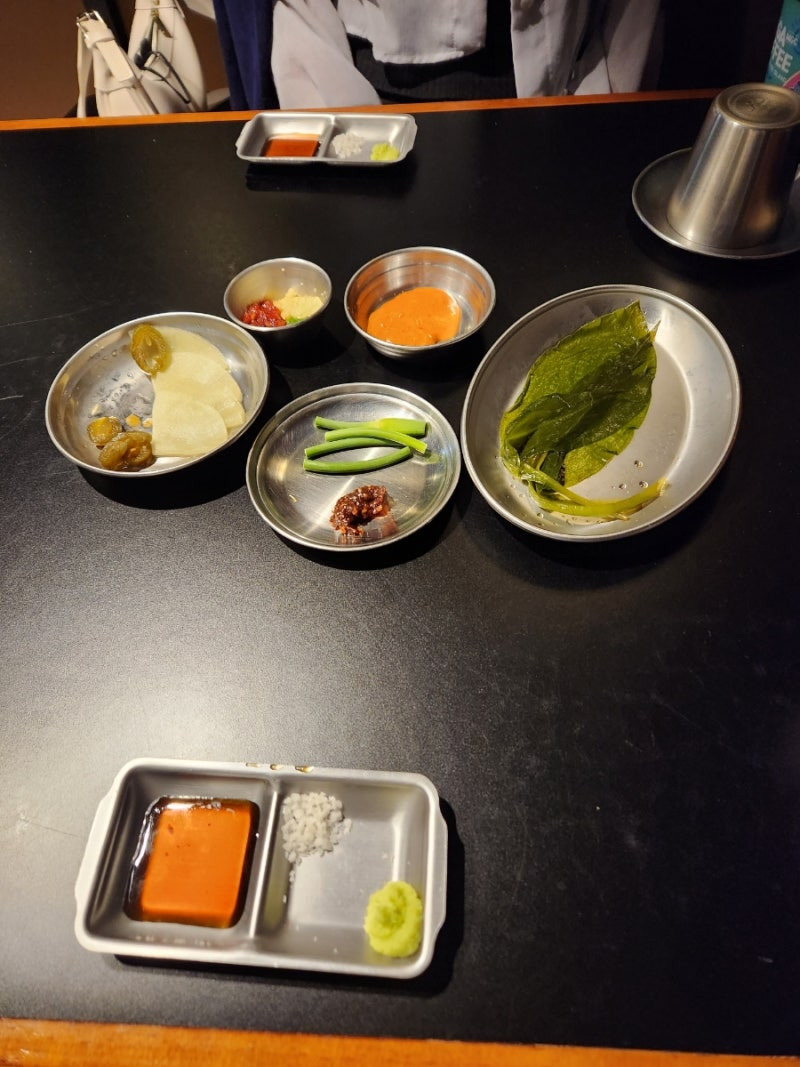 와 같이 다양한 재료가 함께 제공되어, 고기와 함께 즐길 수 있는 다양한 반찬들이 준비되어 있어요. 이곳의 닭구이는 겉은 바삭하고 속은 촉촉해 정말 맛있답니다.