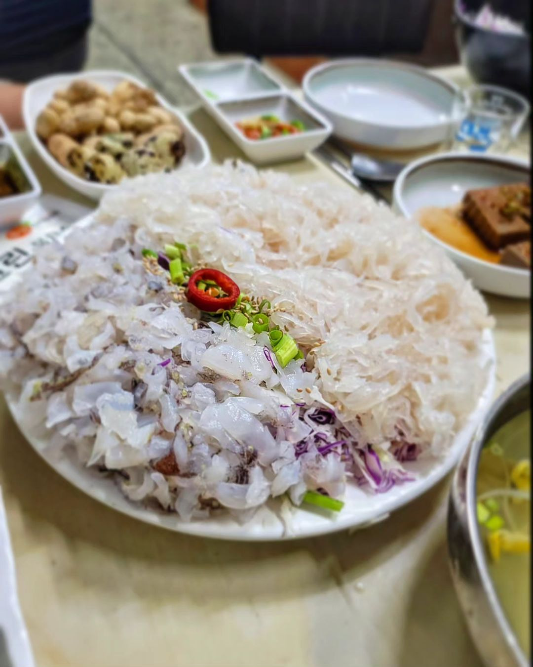 이곳의 대표 메뉴는 바로 산오징어회입니다. 신선한 오징어를 얇게 썰어내어 제공하는데, 그 맛이 정말 일품이에요. 가격은 1인분에 약 25,000원 정도로, 가성비가 뛰어난 편이에요. 그 외에도 다양한 해산물 요리가 준비되어 있어, 회 외에도 여러 가지를 즐길 수 있습니다.