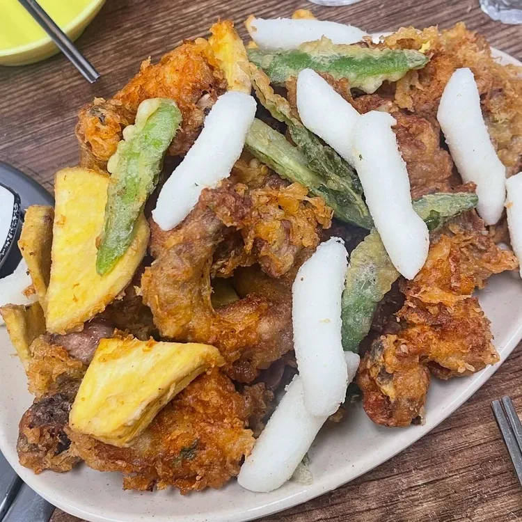 식당의 분위기는 시장 특유의 활기찬 느낌이 가득해요. 사람들이 북적이는 가운데, 치킨이 튀겨지는 소리와 함께 맛있는 냄새가 퍼져나가죠. 내부는 아담하지만 깔끔하게 관리되고 있어요. 플라스틱 의자와 테이블이 배치되어 있어 편안하게 식사할 수 있는 환경이 마련되어 있어요.