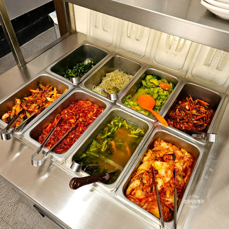 또한, 이곳의 반찬도 빼놓을 수 없어요. 여러 가지 종류의 반찬이 제공되는데, 특히 김치와 나물 반찬이 정말 맛있어요. 반찬은 셀프 서비스로 제공되며, 원하는 만큼 가져갈 수 있어요.