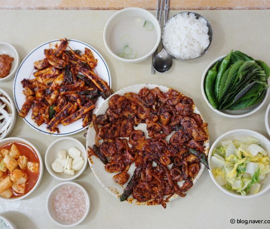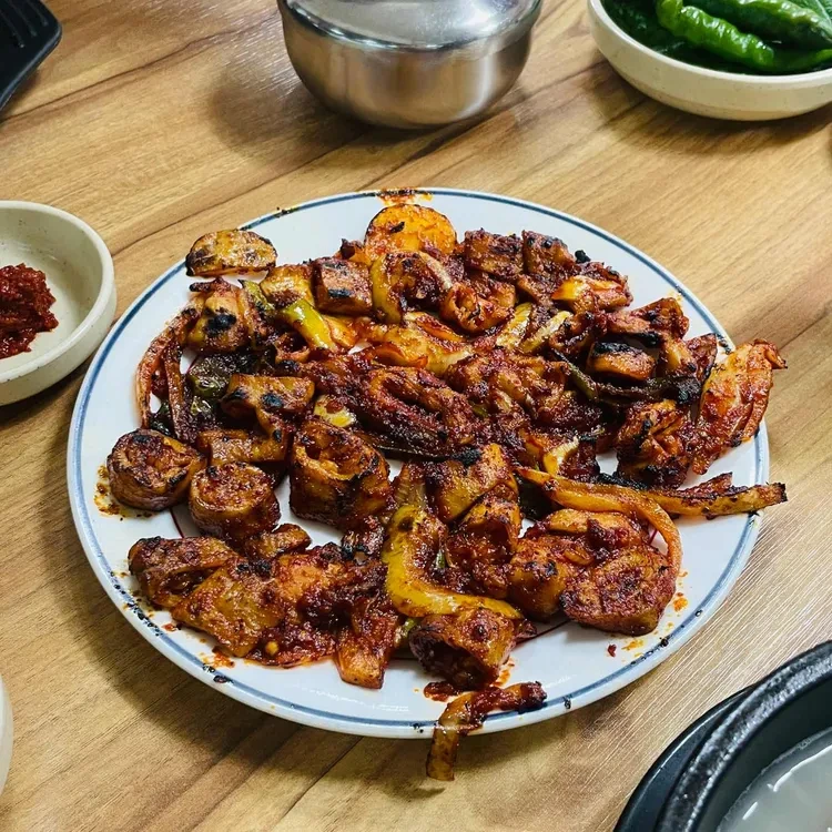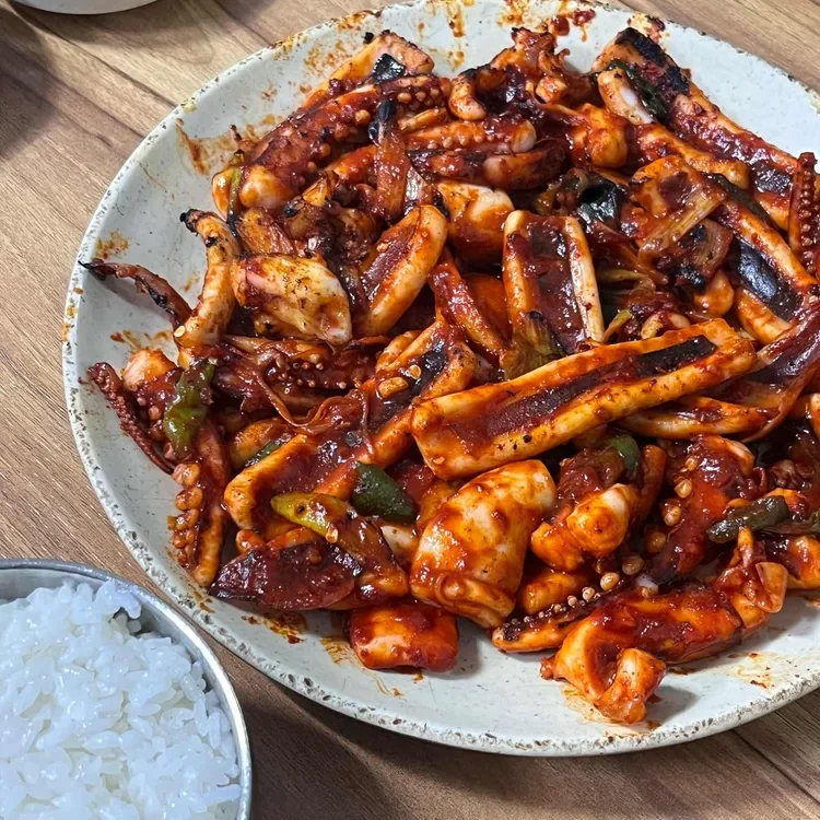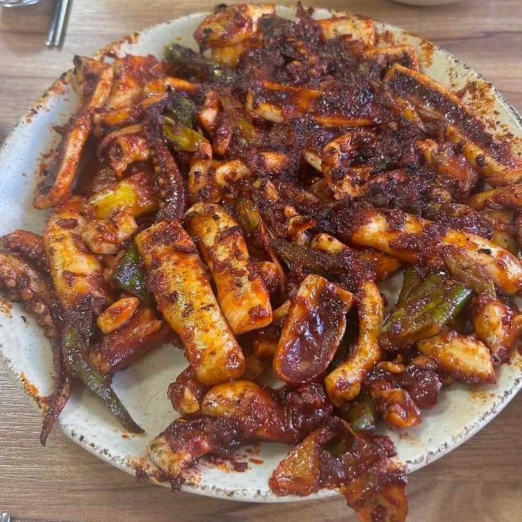 이곳의 대표 메뉴는 오징어 불고기예요. 매콤한 양념에 버무려진 오징어는 정말 맛있어요.