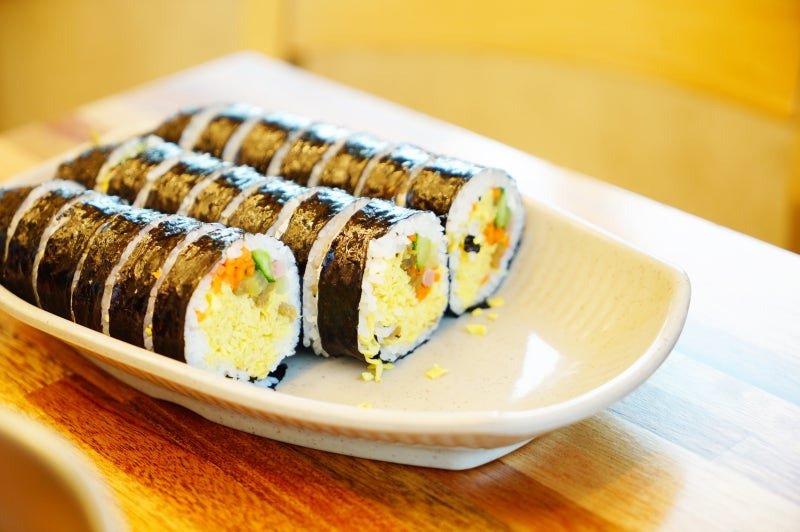 이곳의 대표 메뉴는 바로 김밥이에요. 다양한 종류의 김밥이 준비되어 있는데, 특히 계란김밥이 유명해요. 가격은 한 줄에 약 5,500원 정도로, 두 줄부터 주문할 수 있어요.