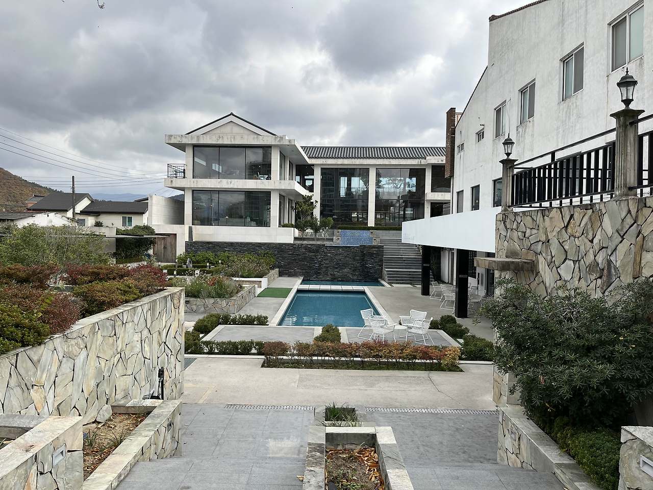 벤자마스는 모던한 디자인의 건물로, 큰 유리창을 통해 자연광이 가득 들어오는 구조예요. 내부는 깔끔하고 세련된 인테리어로 꾸며져 있어, 친구들과의 모임이나 데이트 장소로도 안성맞춤이에요. 특히, 외부에는 잘 가꿔진 정원과 수영장이 있어 여유로운 시간을 보낼 수 있는 공간이 마련되어 있어요.
