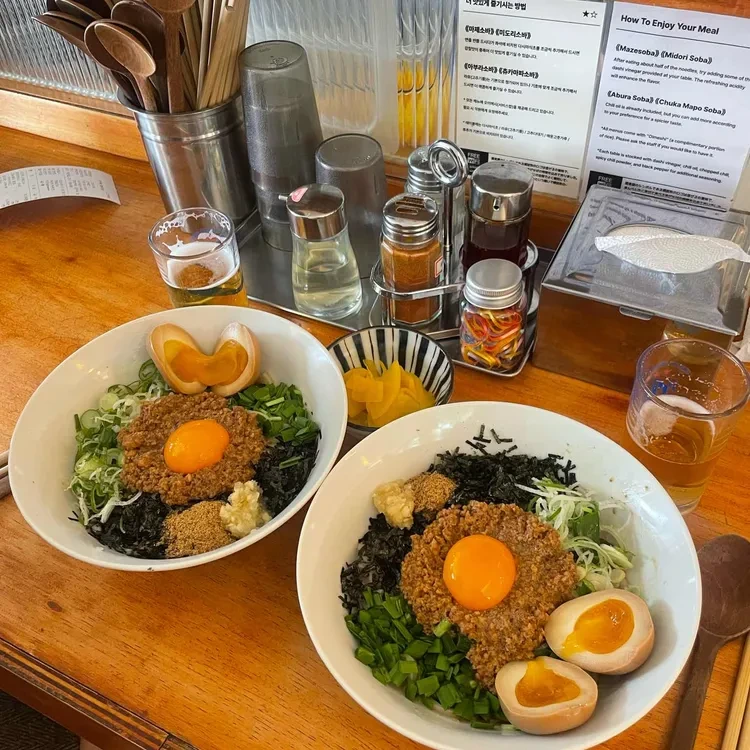 제가 소바카게를 방문했을 때, 마제소바를 주문했어요. 면발이 탱글탱글하고, 신선한 재료들이 어우러져 정말 맛있었어요. 특히, 계란 노른자를 비벼 먹으면 더욱 고소한 맛이 나더라고요.