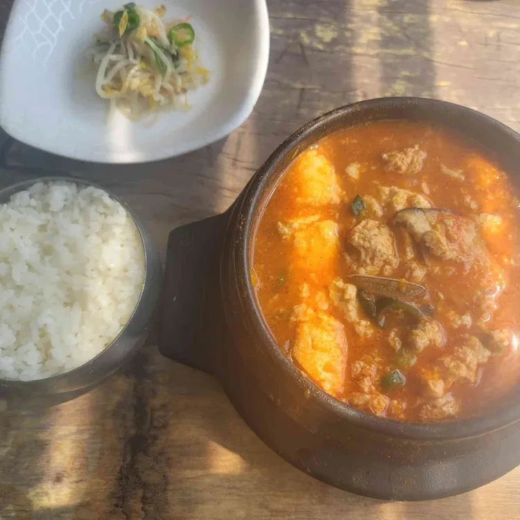이곳의 대표 메뉴는 바로 순두부찌개인데요, 가격은 9,000원으로 매우 합리적이에요. 순두부찌개는 신선한 순두부와 다양한 채소, 그리고 고기가 듬뿍 들어가 있어요.