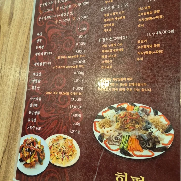 화평의 메뉴는 다양하고 가격대도 합리적이에요. 대표적인 메뉴로는 짬뽕, 볶음밥, 탕수육 등이 있어요. 가격은 대체로 5,000원에서 35,000원 사이로, 다양한 선택지가 마련되어 있어요. 특히, "화평특선"은 꼭 한번 시도해보길 추천해요!