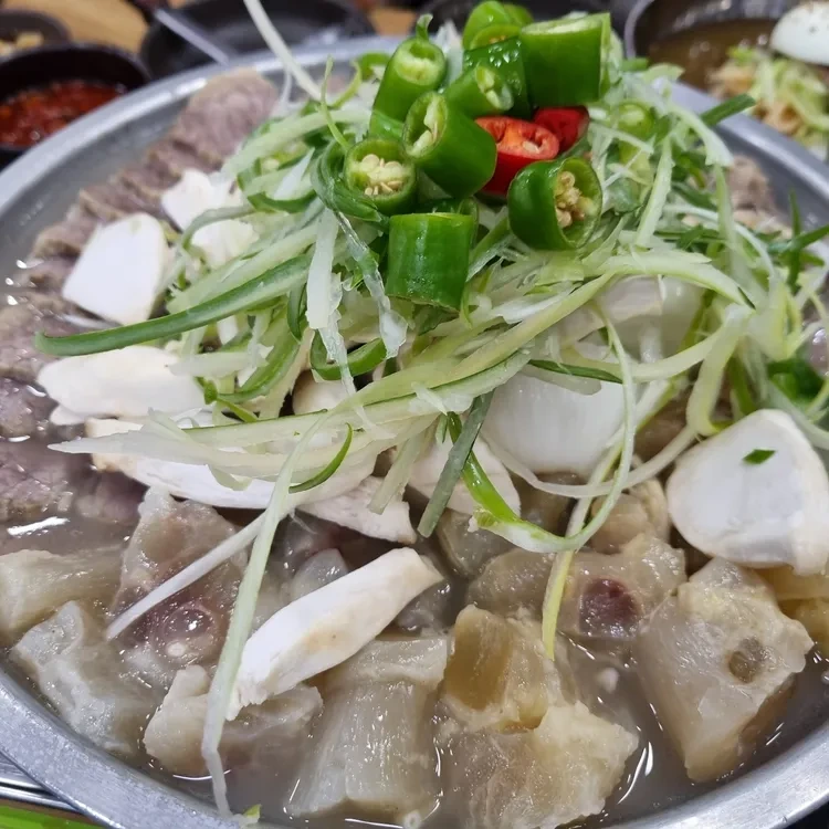 - 수육전골 : 부드러운 수육과 함께 다양한 채소가 들어가 있어, 국물 맛이 깊고 풍부해요.