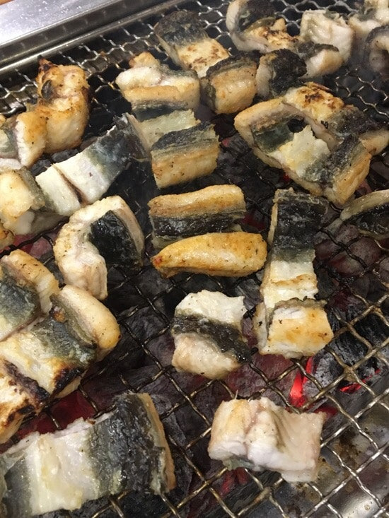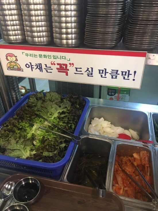특히, 장어를 구울 때 나오는 향이 정말 매력적이에요. 숯불에 구워지는 장어의 맛은 정말 특별하답니다. 그리고 이곳은 셀프 서비스 방식이라서, 원하는 만큼 야채와 반찬을 가져다 먹을 수 있어요.
