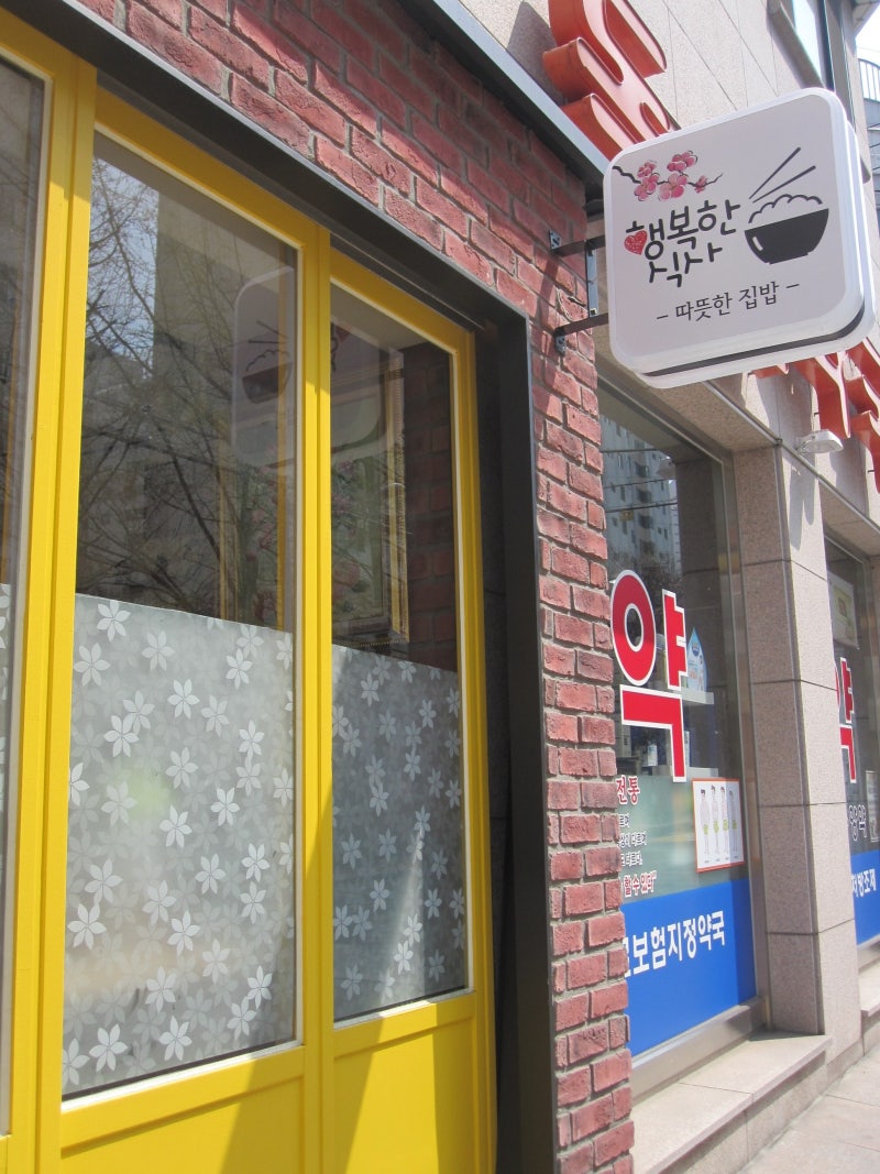 엄마네집밥은 공덕역에서 도보로 약 5분 거리에 위치해 있어요. 이곳은 아늑한 분위기로, 마치 집에서 식사하는 듯한 편안함을 제공합니다. 식당의 외관은 밝은 노란색 문이 인상적이며, 벽돌로 된 외벽과 함께 따뜻한 느낌을 주죠.