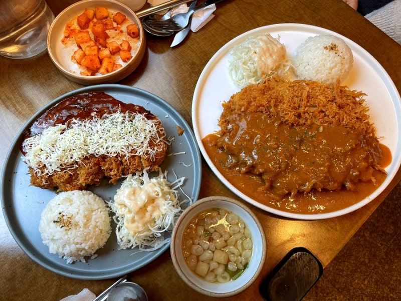 또한, 커리 돈까스도 추천해요. 커리 소스가 진하고 깊은 맛을 자랑하며, 밥과 함께 먹으면 정말 맛있어요. 가격은 10,000원이에요.