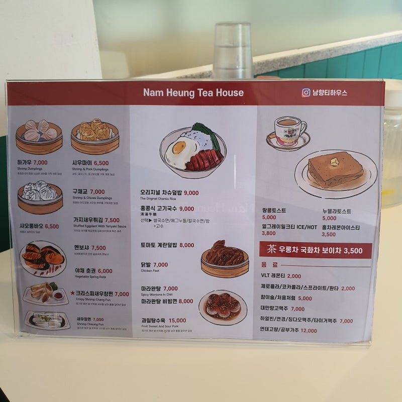 남양 티하우스의 메뉴는 다양하고 가격대도 합리적이에요. 특히 추천하고 싶은 메뉴는 차슈덮밥과 딤섬이에요. 차슈덮밥은 부드러운 돼지고기와 함께 제공되며, 가격은 8,000원 정도에요. 딤섬은 종류가 여러 가지인데, 가격은 4,000원에서 6,000원 사이로 다양해요.