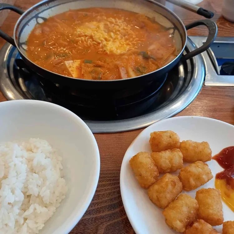 부대찌개와 함께 나오는 사이드 메뉴로는 감자튀김이 있어요. 바삭한 감자튀김은 부대찌개와 함께 먹으면 더욱 맛있답니다. 가격은 3,000원 정도로 저렴해요.
