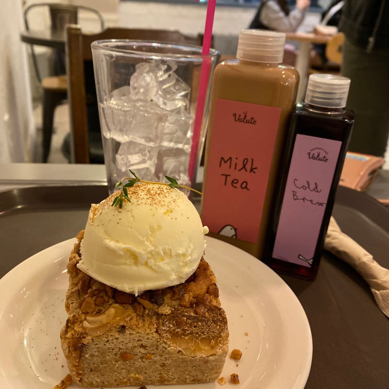 음료로는 밀크티 와 콜드브루 가 인기인데, 특히 밀크티는 부드러운 맛이 일품이에요.