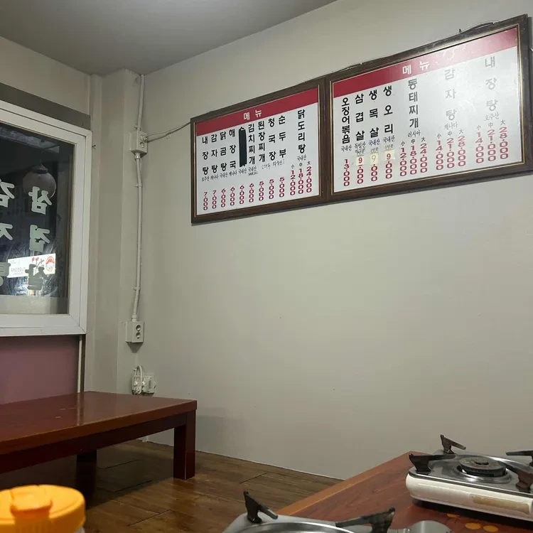 식당 내부는 아늑하고 따뜻한 느낌이에요. 나무로 된 테이블과 의자가 배치되어 있어 편안하게 식사할 수 있는 환경이 조성되어 있어요. 메뉴판도 깔끔하게 정리되어 있어, 다양한 선택지를 쉽게 확인할 수 있답니다.