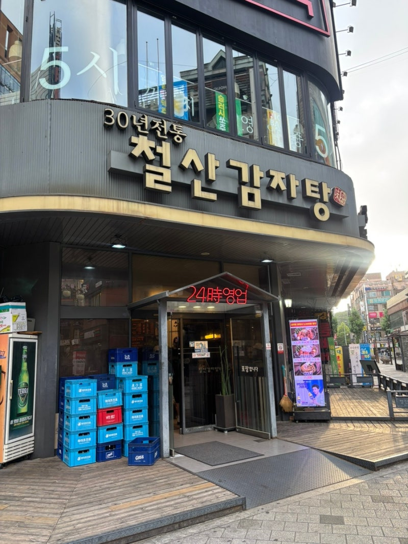철산감자탕은 광명시 철산역 근처에 위치해 있어요. 이곳은 언제든지 방문할 수 있는 24시간 운영되는 식당으로, 늦은 밤에도 맛있는 음식을 즐길 수 있는 곳이에요. 외관은 깔끔하고 현대적인 느낌을 주며, 큰 간판이 눈에 띄어요.