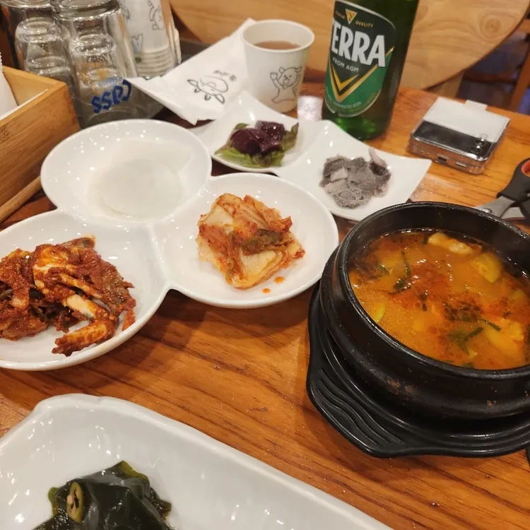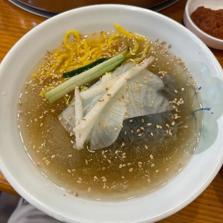 사이드 메뉴로는 매콤한 오징어와 김치, 그리고 시원한 냉면도 인기입니다. 특히 냉면은 여름철에 시원하게 즐기기 좋은 메뉴로, 고기와 함께 먹으면 더욱 맛있어요.