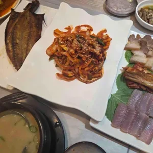 식당 내부는 아늑하고 따뜻한 분위기로 꾸며져 있어요. 조명이 부드럽고, 나무 테이블과 의자가 조화를 이루어 편안한 느낌을 줘요. 특히, 친구들과 함께 앉아 소주 한 잔 하며 이야기를 나누기 좋은 환경이에요.
