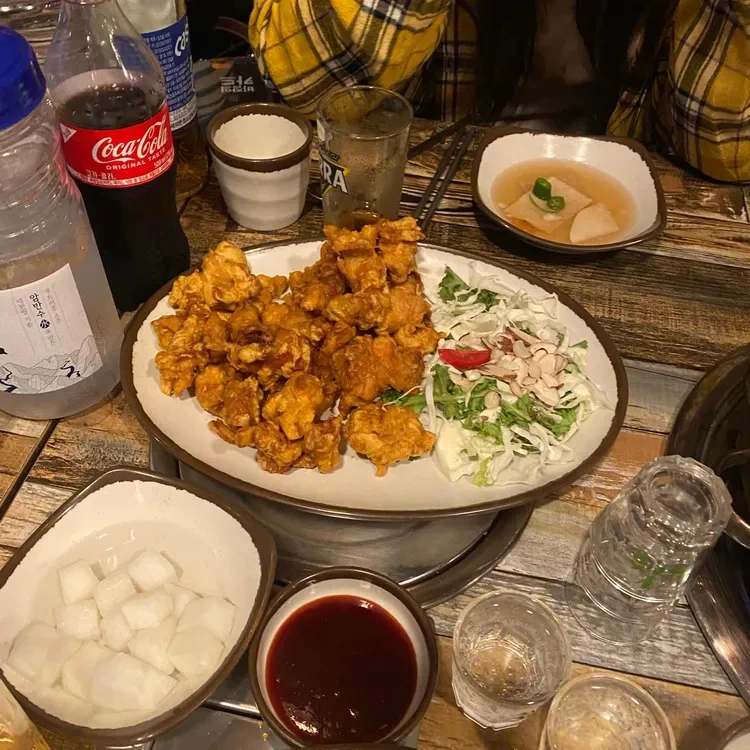 또한, 이곳의 대표적인 안주인 치킨도 빼놓을 수 없죠. 바삭하게 튀겨진 치킨은 1인분에 15,000원으로, 신선한 샐러드와 함께 제공돼요.