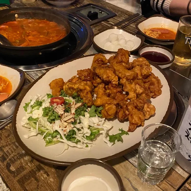 식당 내부는 아늑하고 따뜻한 느낌이 들어요. 벽에는 예쁜 장식과 조명이 있어 분위기가 정말 좋답니다. 친구들과 함께 오면 소중한 시간을 보낼 수 있는 공간이에요.