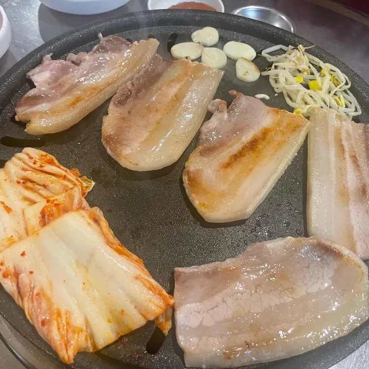 고기가 노릇노릇하게 익어가는 모습은 정말 군침이 돌게 하죠. 그리고 고기와 함께 나오는 마늘과 콩나물도 잊지 말고 함께 즐겨보세요.
