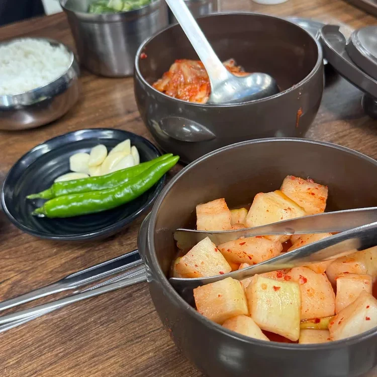 식당 내부는 아늑하고 편안한 분위기로 꾸며져 있어요. 나무 테이블과 의자가 조화를 이루며, 전통적인 한국식 인테리어가 돋보여요. 가족 단위 손님이나 친구들과 함께 오기에도 좋은 공간이에요. 또한, 식사 중에 나오는 다양한 반찬들도 정갈하게 준비되어 있어 더욱 맛있게 식사를 즐길 수 있어요.