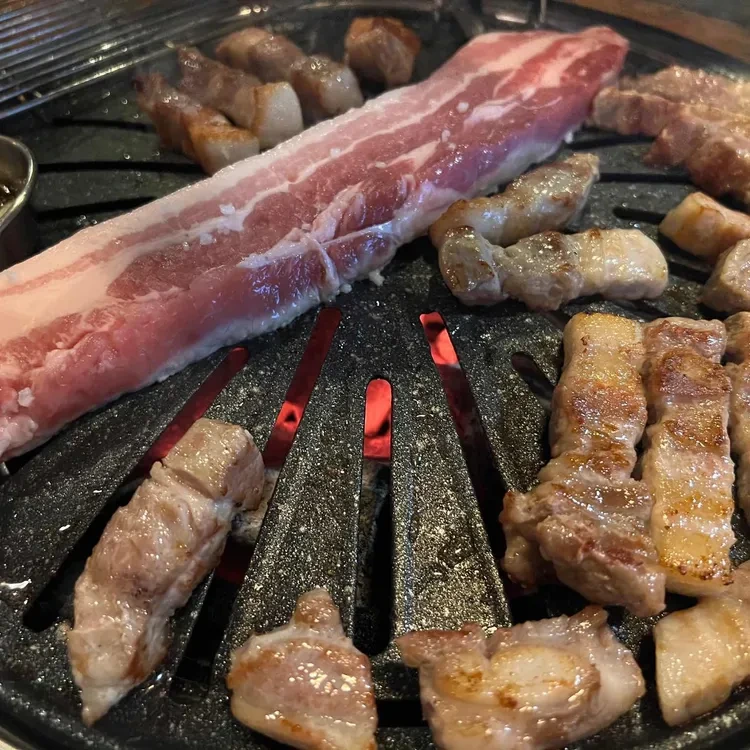 고기를 구울 때는 직원이 직접 도와주기도 하며, 고기가 잘 구워지면 직원이 적절한 타이밍에 잘라주기도 해요. 이곳의 고기는 신선하고 육즙이 가득해 정말 맛있어요.