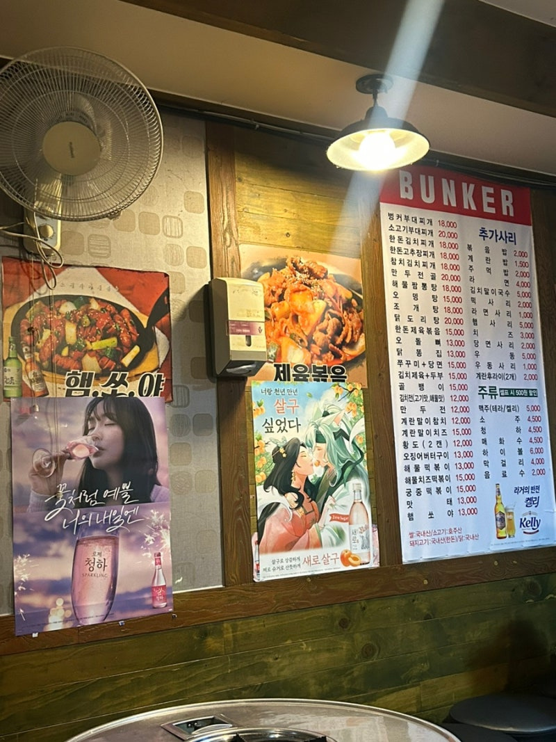 벙커2의 메뉴는 다양하고 가격도 합리적이에요. 특히 추천하고 싶은 메뉴는 '벙커 부대찌개'와 '벙커 프라이드 치킨'이에요. 부대찌개는 푸짐한 양과 깊은 맛으로 많은 사랑을 받고 있고, 프라이드 치킨은 바삭한 식감이 일품이에요. 가격은 부대찌개가 약 8,000원, 프라이드 치킨은 15,000원 정도로 저렴한 편이에요.