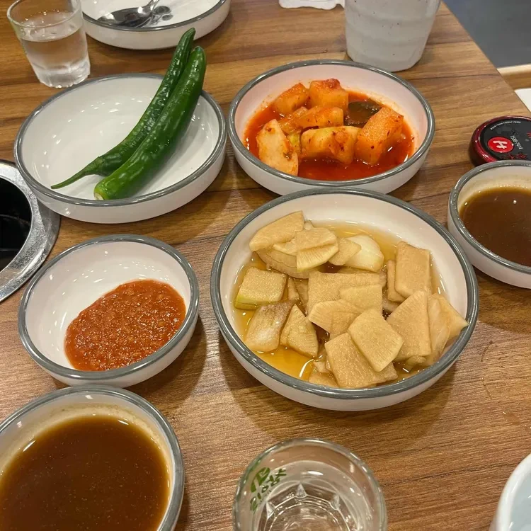 사이드 메뉴로는 다양한 반찬들이 제공되는데, 김치와 무생채, 그리고 고추가 함께 나와요. 이 반찬들은 감자탕과 함께 먹으면 더욱 맛있답니다.