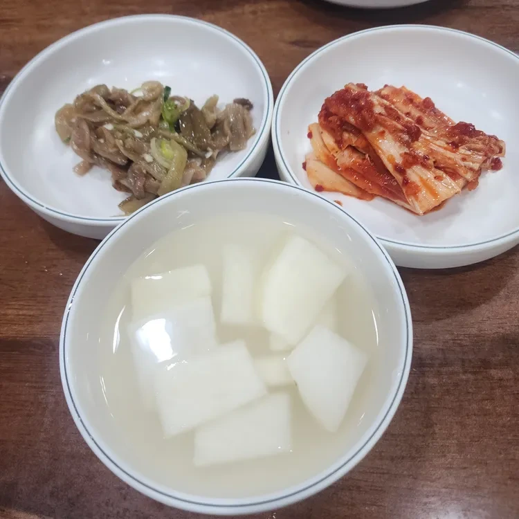 또한, 사이드 메뉴로는 물김치와 묵, 그리고 김치가 제공되는데, 이 모든 반찬이 매운탕과 잘 어울려요. 물김치는 달지 않고 아삭한 식감이 좋았고, 묵과 콩자반도 맛있었어요.