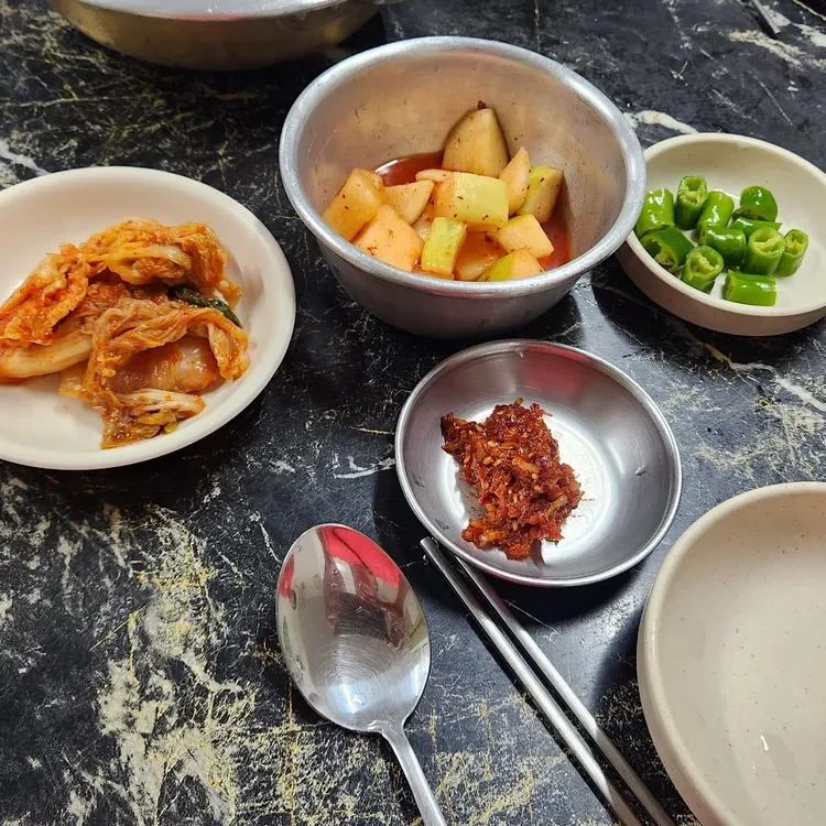 또한, 다양한 반찬도 함께 제공되는데, 특히 김치와 젓갈이 정말 맛있어요.
