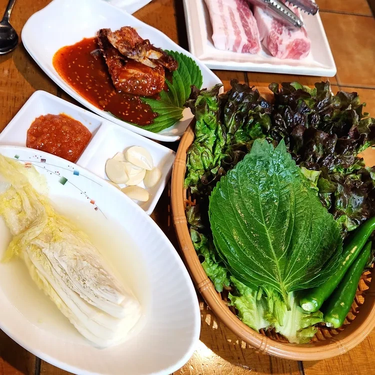 이 외에도 다양한 사이드 메뉴가 준비되어 있어요. 신선한 쌈채소와 함께 제공되는 반찬들은 고기와 함께 먹기 좋고, 특히 매운 양념장과 함께 먹으면 더욱 맛있답니다.