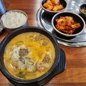 처럼 푸짐하게 담겨 나와요. 감자탕의 국물은 깊고 진한 맛이 나서, 한 숟가락 먹으면 속이 확 풀리는 느낌이에요. 순대국도 추천하는 메뉴 중 하나인데, 순대와 함께 다양한 재료가 들어가 있어요.
