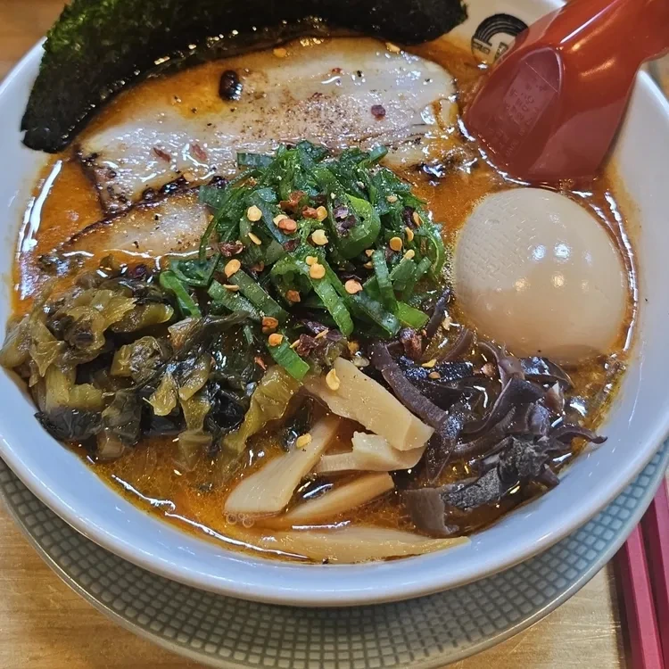 이 라멘은 부드러운 차슈와 완숙 계란, 그리고 아삭한 채소들이 조화를 이루고 있어요.